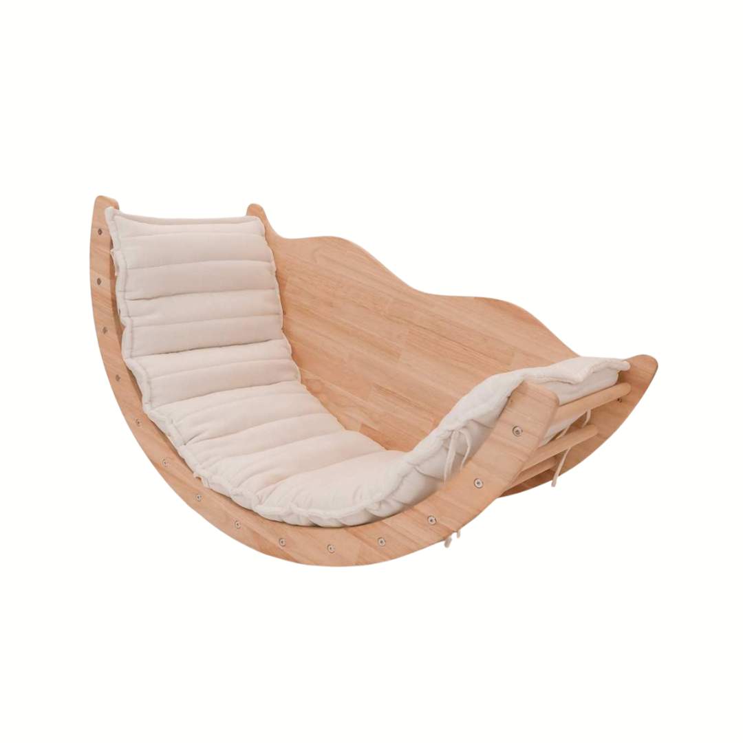 Der Montessori Kletterbogen mit Kissen ist mehr als ein Klettergerät. Mit dem weichen Kissen wird er zur gemütlichen Wippe oder zur kleinen Sitzecke. So kann dein Kind den Montessori Kletterbogen mit Kissen von den ersten Jahren bis ins Kleinkindalter vielseitig nutzen.
